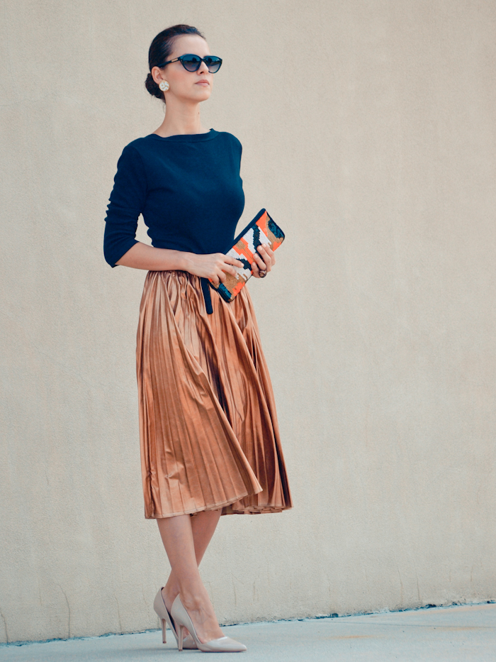 This is a great look for the office. Who says skirts for the office are only confined to pencil skirts? Don’t get me wrong I love me a pencil skirt, but incorporating a midi skirt to your office attire adds instant chic.