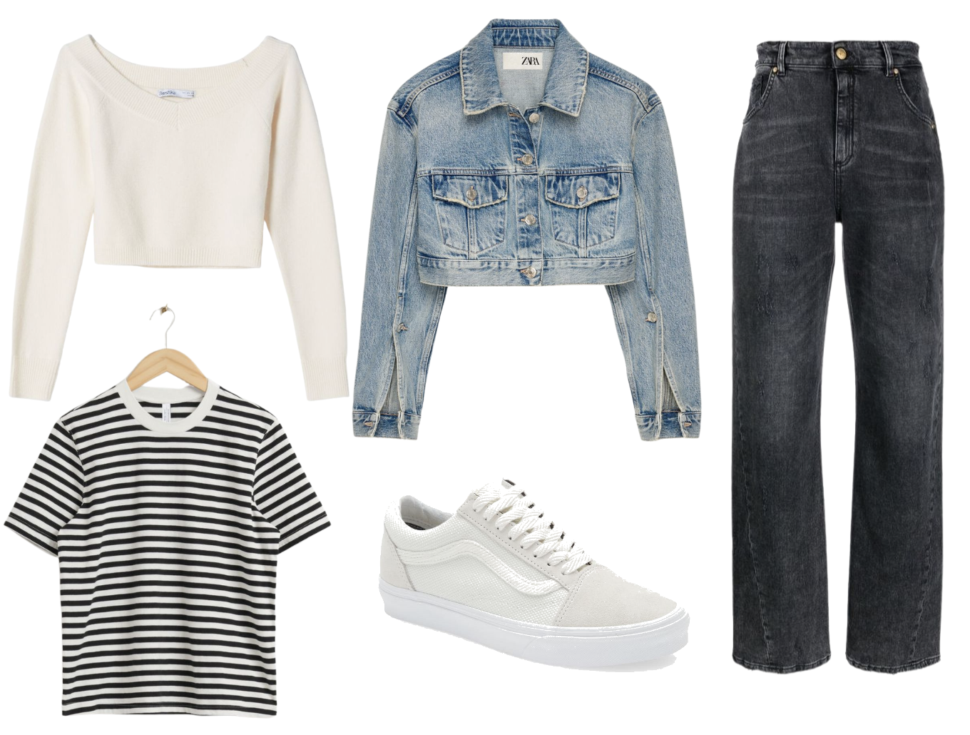 I love high-waisted pants. Since I’m super short, high-waisted anything always makes me look taller. For this look, I decided to go for a darker denim. Of course you can opt for denim on denim, but I personally don’t do it that much. If do, I’ll usually either wear a jacket that is darker than the jeans or vice versa. For the top, I decided to go classic (of course). If you want a super casual, laid back look, a striped t-shirt is the way to go. If you want to go a bit more dressed up but still casual, a nice cropped sweater is perfect.